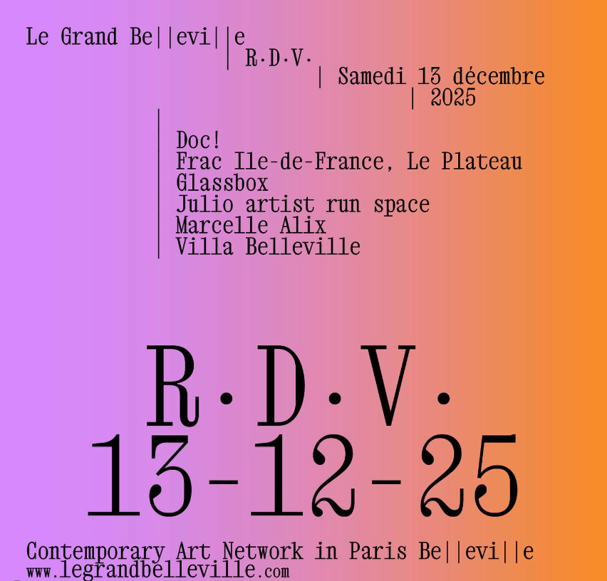 Le Grand Belleville vous donne rendez-vous le samedi 13 décembre pour un tour des lieux du réseau avec @doc_wooork @fraciledefrance @glassbox.nord @julio_artist_run_space @marcellealix @villabelleville